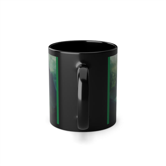 Black Coffee Cup, 11oz, pictured is The Fallen City of Odia limited edition